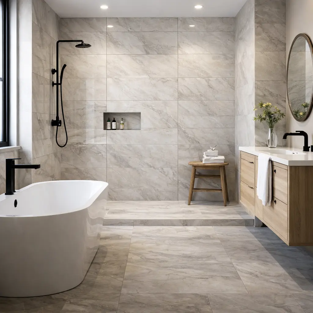 Modern, durable porcelain tile ideal for high-traffic areas. Clean look, low maintenance, and a flawless finish that lasts for years.
